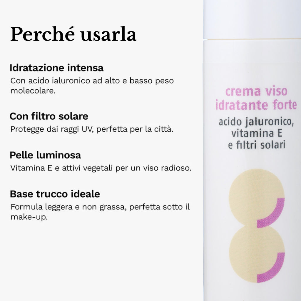 Crema Viso Idratante Forte con Acido Ialuronico, Vitamina E e Filtri Solari 50 ml