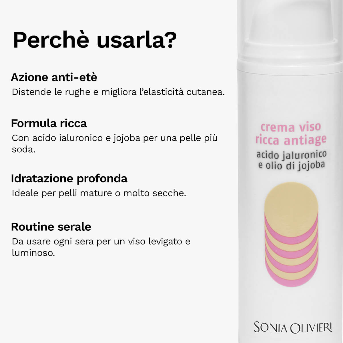 Crema Viso Ricca Antiage con Acido Jaluronico e Olio di Jojoba 50 ml