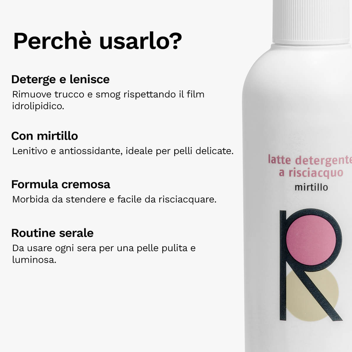 Il Latte Detergente a risciacquo al Mirtillo è perfetto per chi desidera una pulizia quotidiana delicata che rispetti l’equilibrio della pelle, migliorandone l’idratazione e il comfort senza aggredire il film idrolipidico.